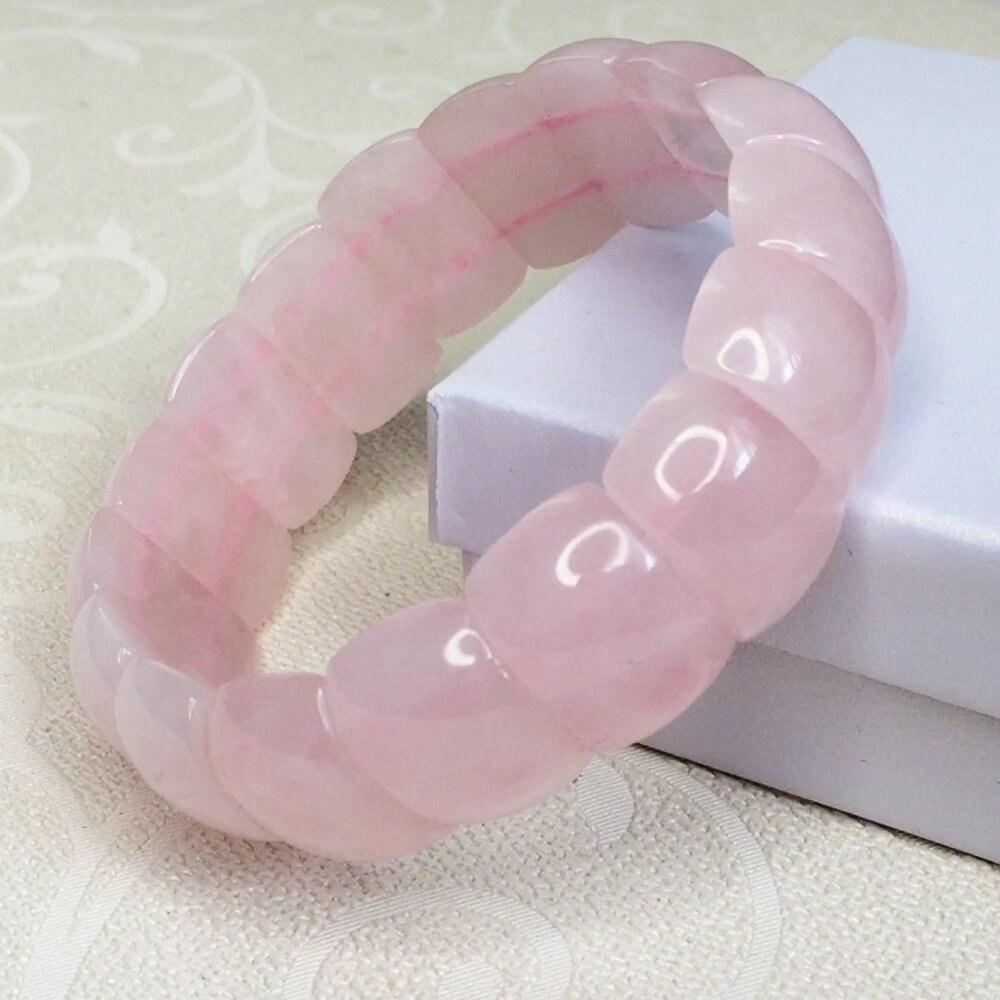 Браслет из камней розовый кварц. Женский браслет глидерный из розового кварца 25х11мм