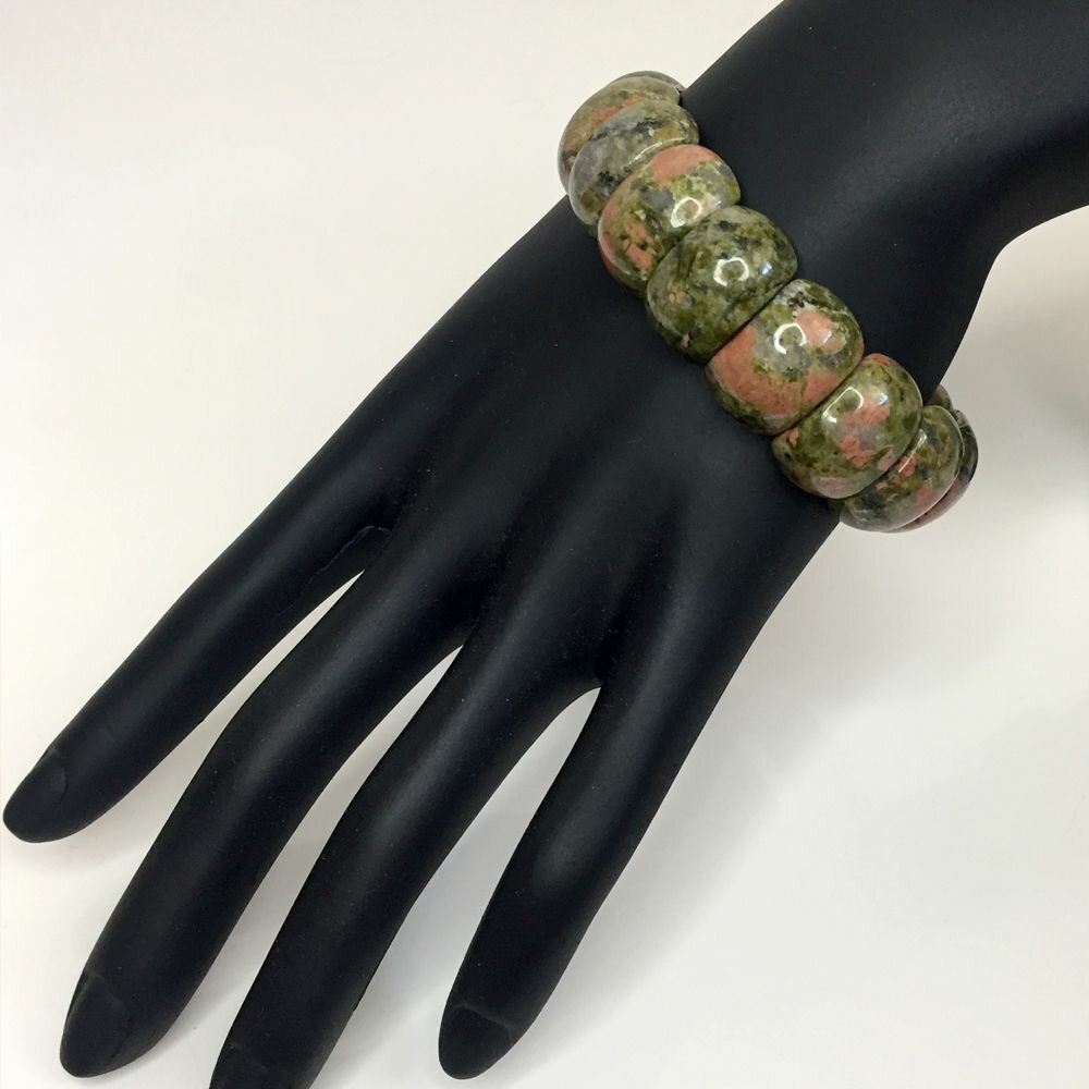 Браслет женский из камней Яшма унакит. Женский браслет глидерный из натуральных камней 25х12мм