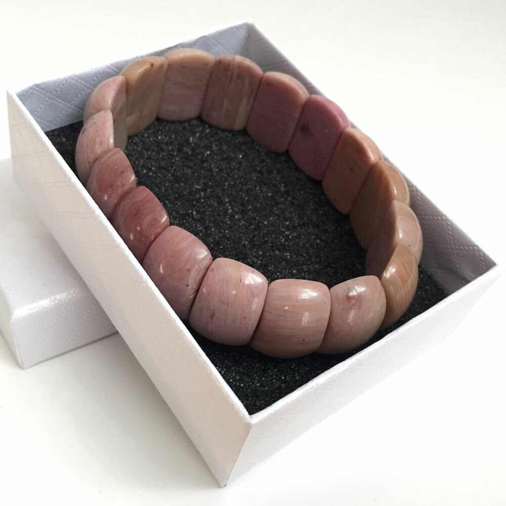 СохранитьБраслет из камней Родонит, эксклюзивный экземпляр. Женский браслет глидерный из родонита 18х11мм интересное: