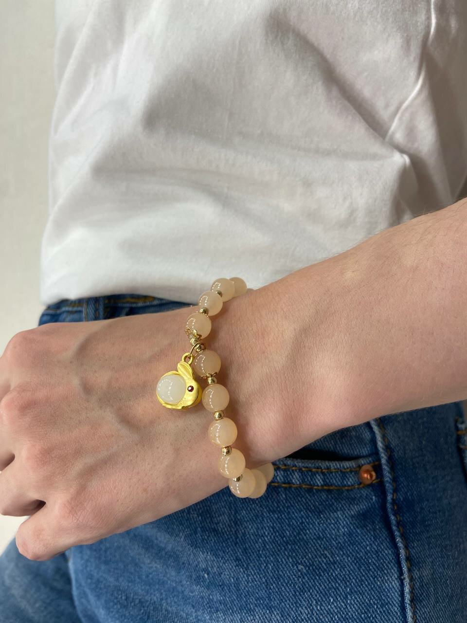 Браслет женский из кварца "Зайчик" /детский браслет.