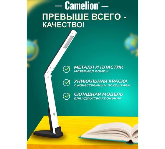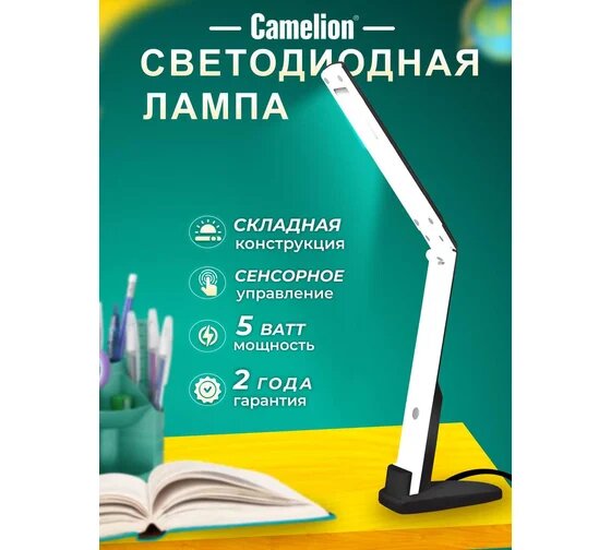 Светильник настольный CAMELION KD-808 Light Advance 12721 светодиодный, черный-белый, 220В, 5Вт