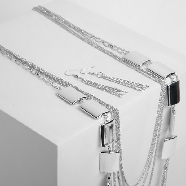 Набор 2 предмета: серьги, бусы "Унисон" прямоугольники, цвет серебро, 80 см интересное: