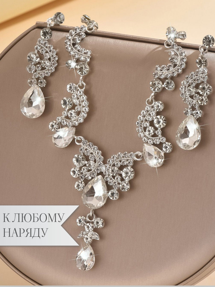Комплект бижутерии женский свадебный с крупными стразами интересное: