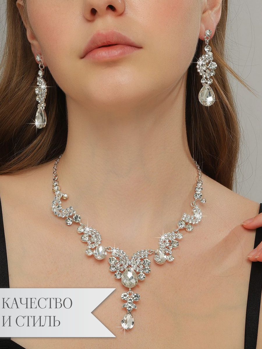 | Комплектация | ожерелье с кристаллами и серьги из страз |