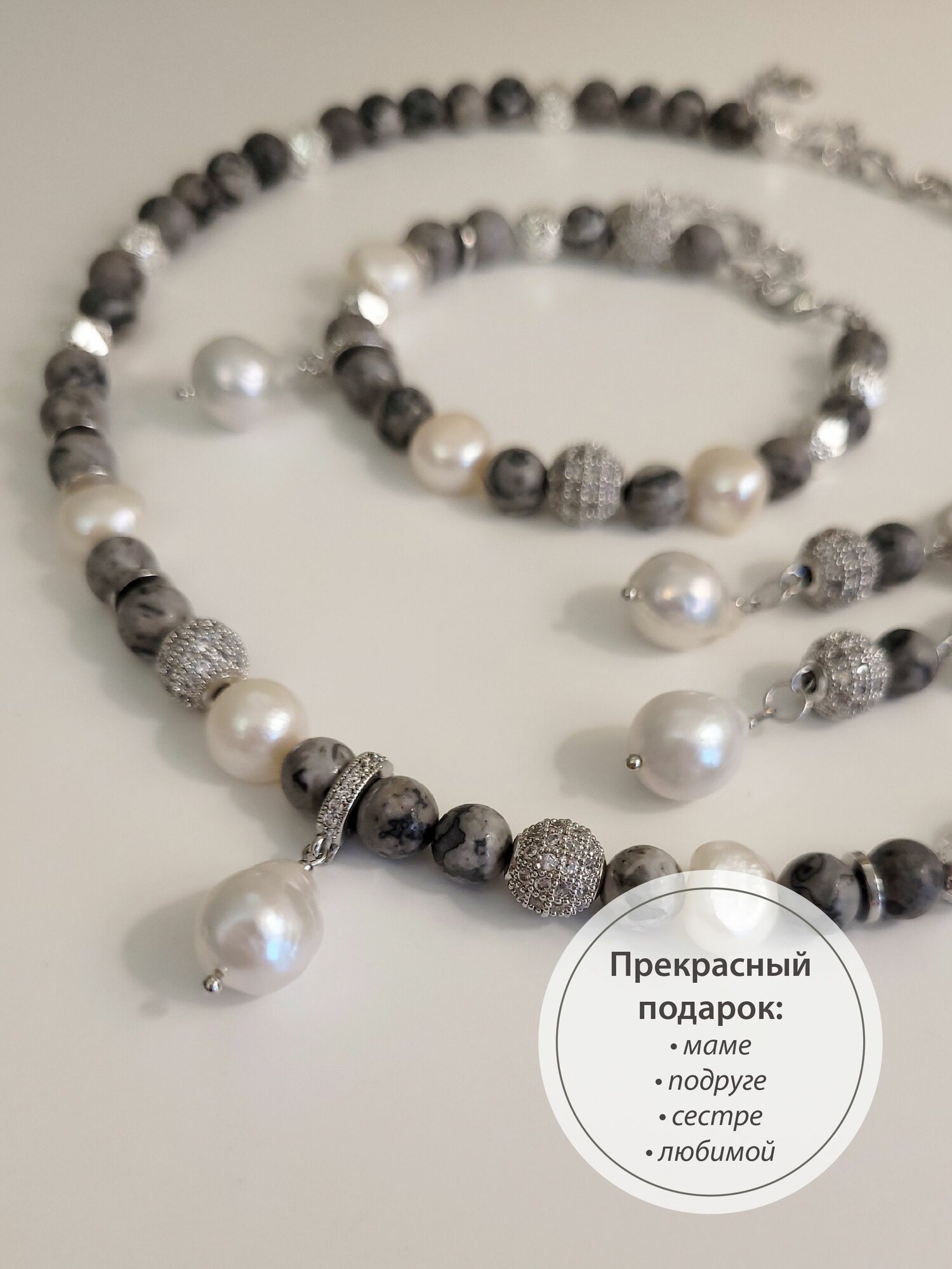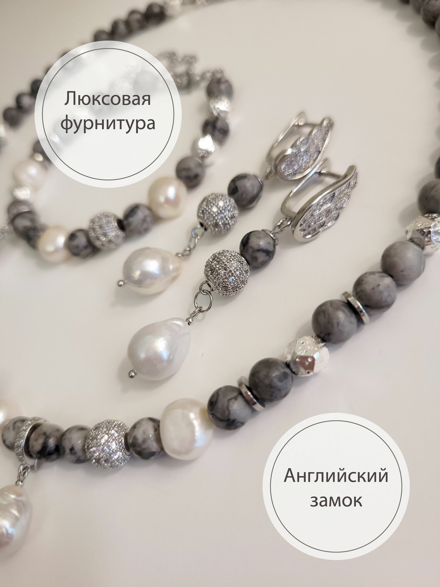 Комплект украшений "Крылья судьбы" с яшмой, лавой и жемчугом интересное: