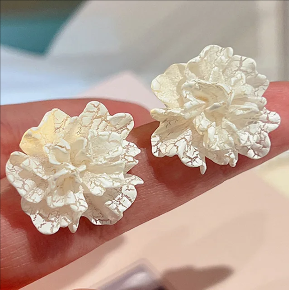 Серьги женские цветочки белого цвета бижутерия для девушки