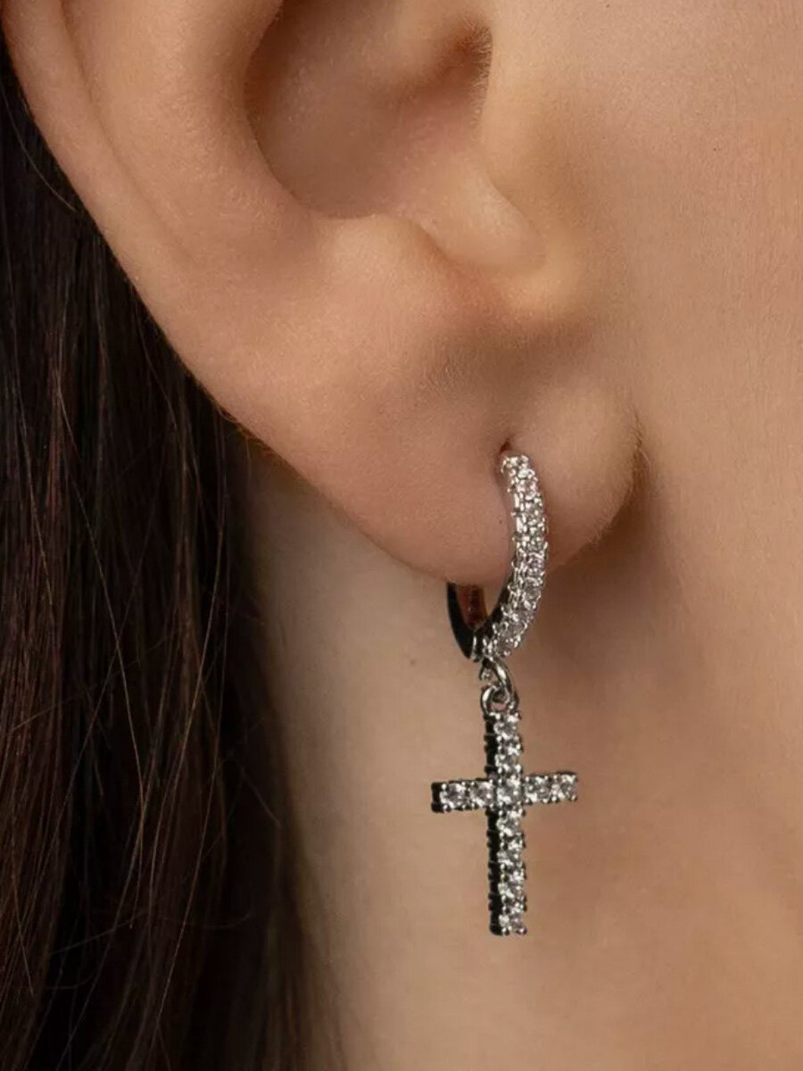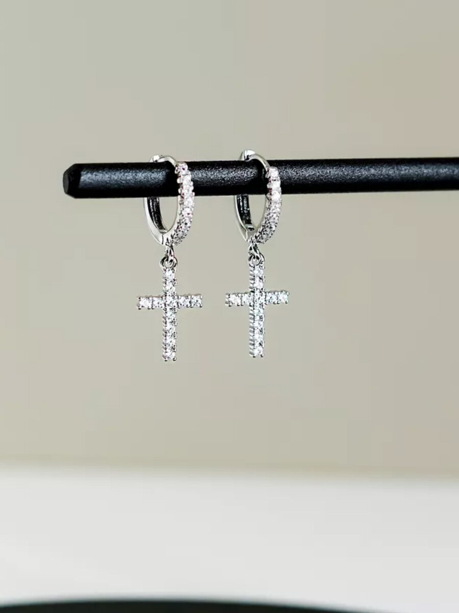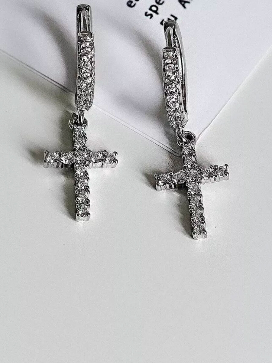 Серьги женские в форме крестика серебряного цвета интересное: