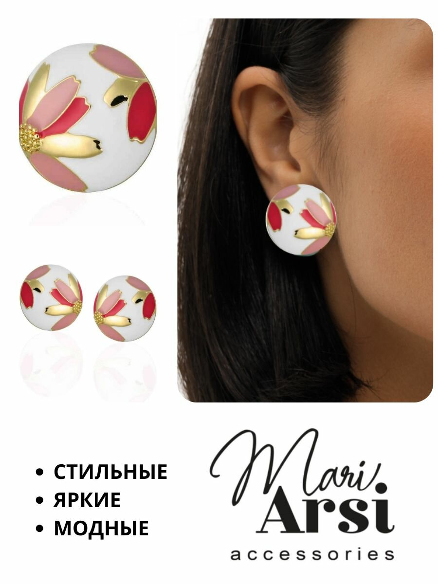 Серьги пусеты MariArsi, эмаль, размер 25 мм, розовый