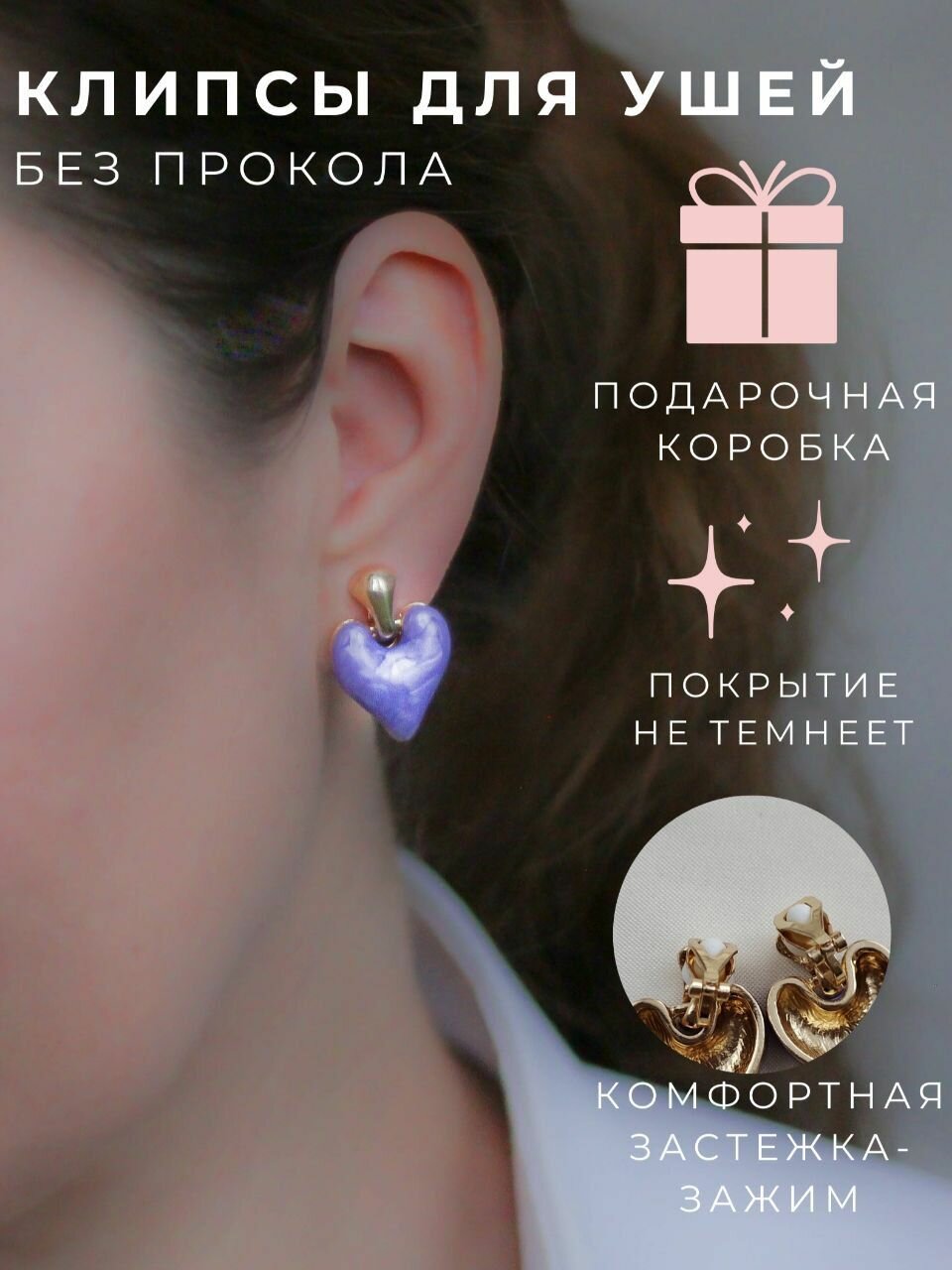 Клипсы для ушей в виде сердца интересное: