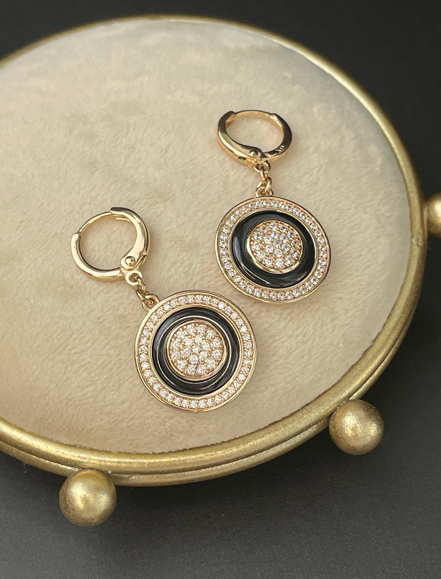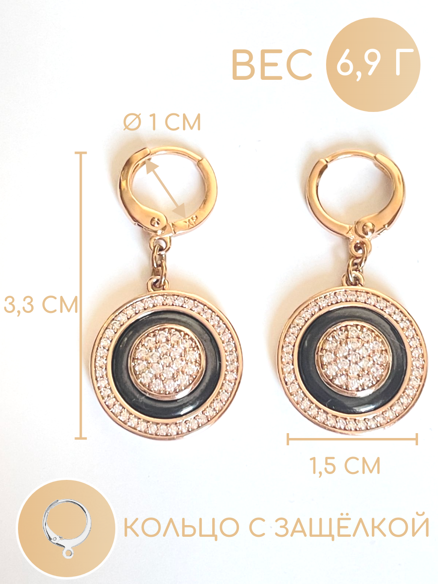 Серьги Xuping медицинское золото, черная керамика интересное: