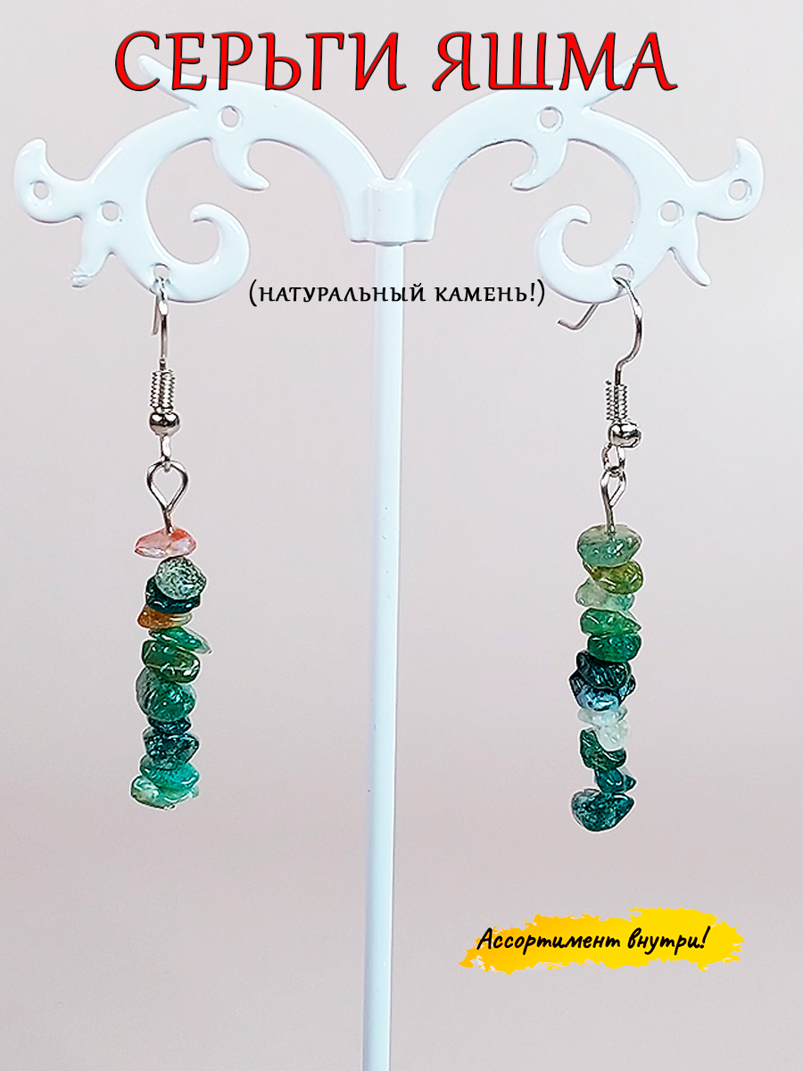 Серьги ОптимаБизнес, хризопраз, сердолик, аметист, нефрит, лазурит, горный хрусталь, обсидиан, тигровый глаз, яшма