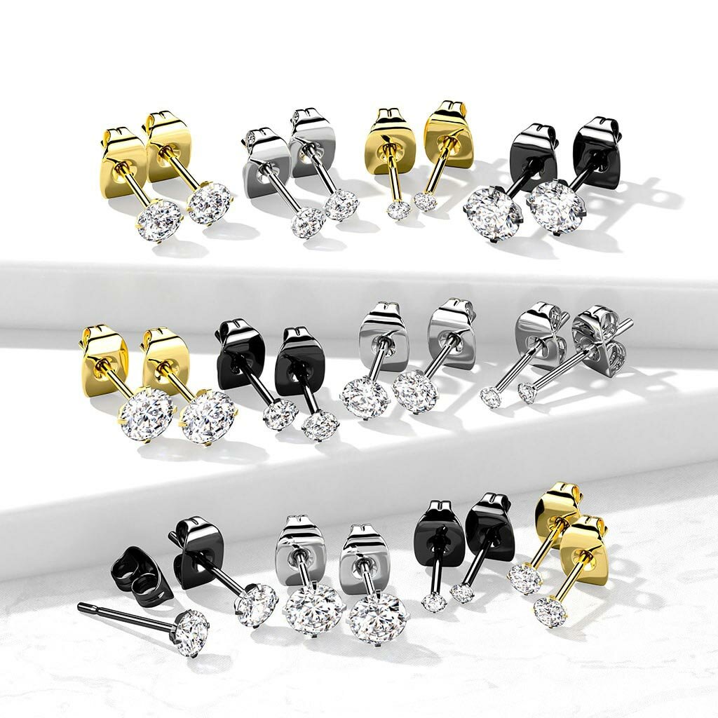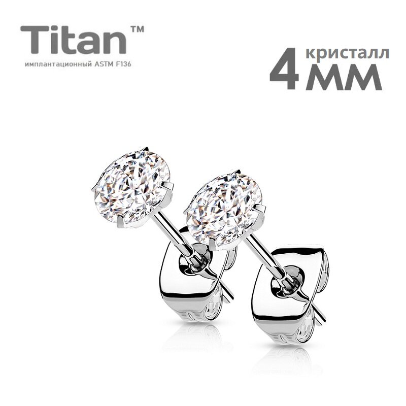 Купить Серьги гвоздики пусеты из титана с кубическим цирконием/кристалл 4 мм