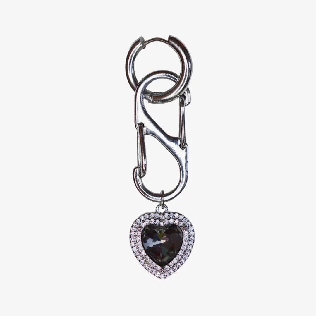 Купить Моно-серьга 2SICK «Grey heart». Серебристая фурнитура с родиевым покрытием, карабин, серое сердце с фианитом