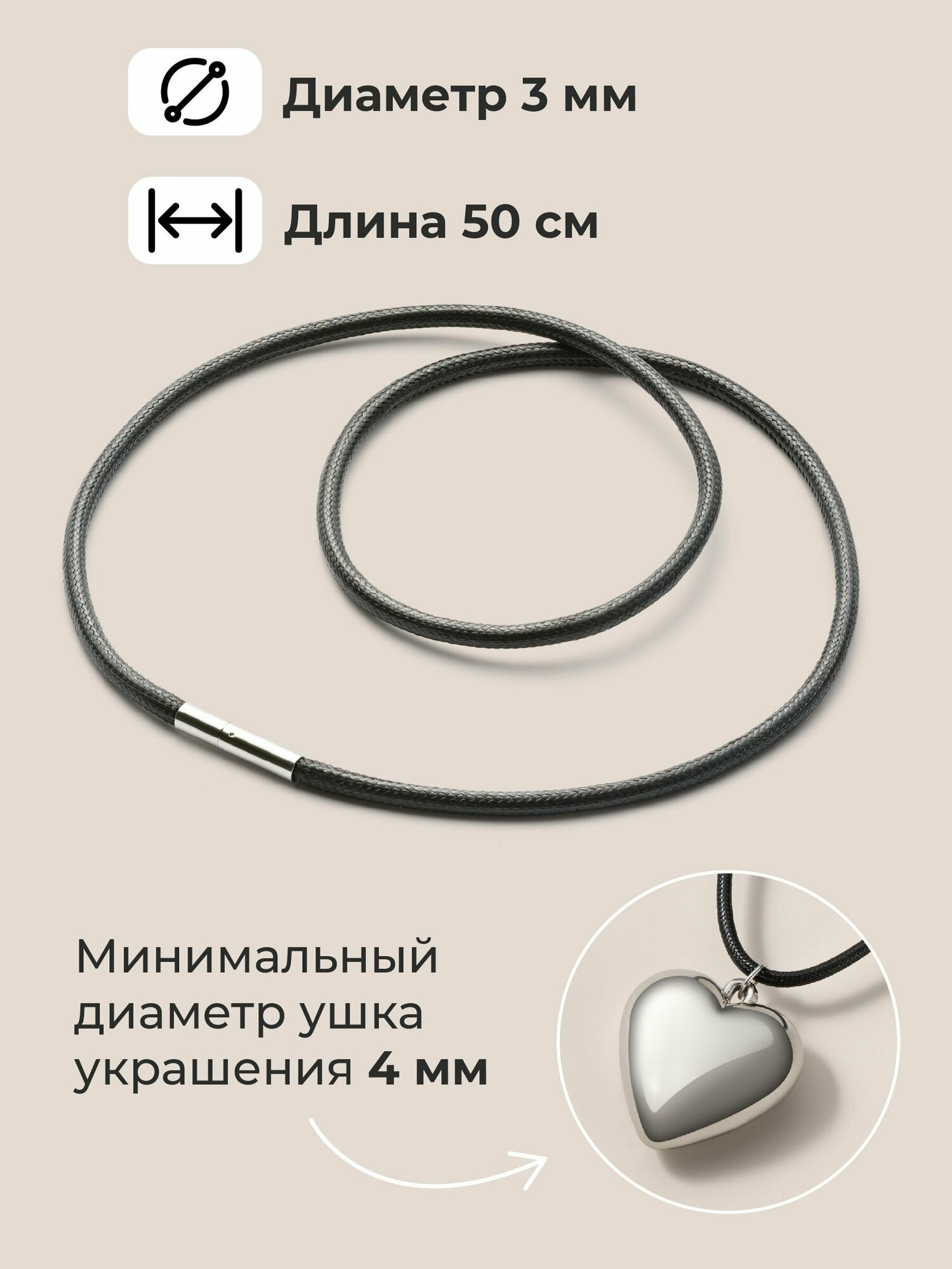 Кожаный шнурок на шею для крестика и подвески гайтан, JewelryMeverly, Веревочка для кулона, бижутерии, Черный, 3 мм, 55 см