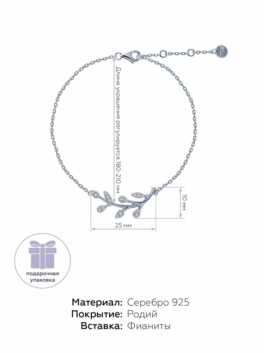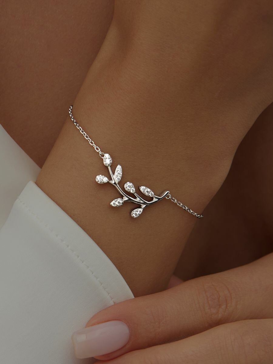 Браслет MIESTILO серебро 925 пробы серебряный на руку тонкий с подвеской веточка