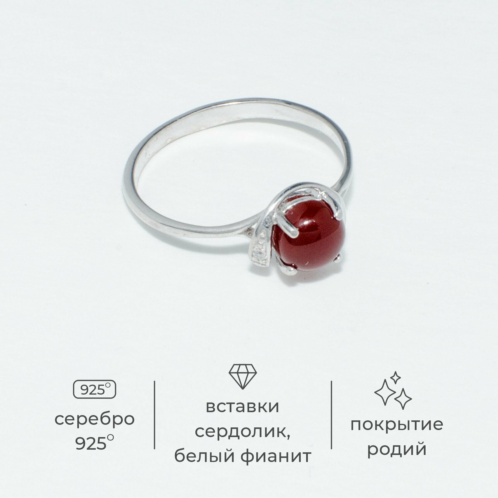 Сереброника, серьги и кольцо с сердоликом и белым фианитом из серебра 925 пробы интересное: