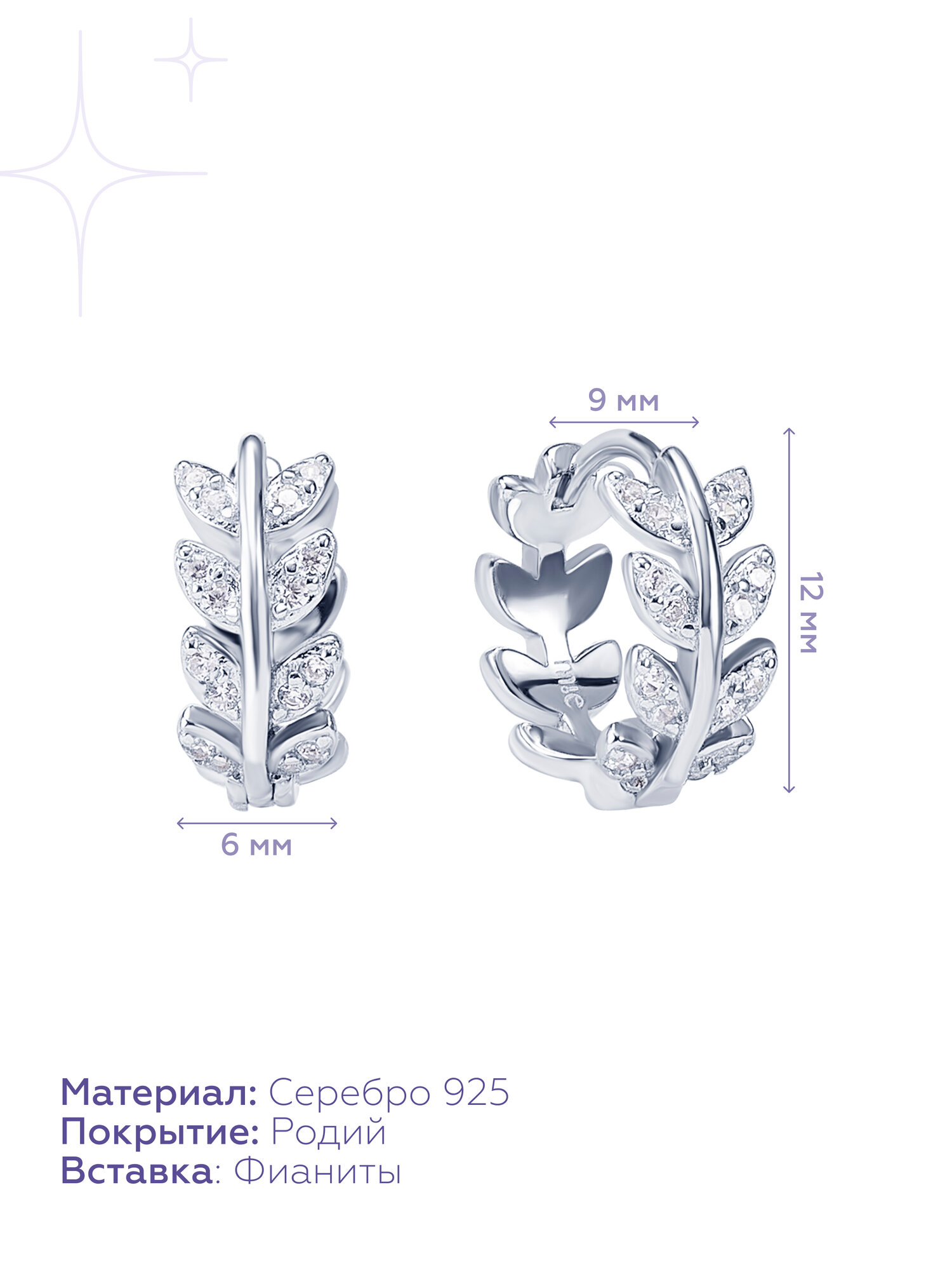 Серьги конго MIESTILO, серебро, 925 проба, родирование, фианит, размер 12 мм, , серебристый