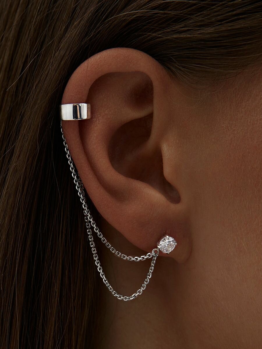 Моносерьга MIESTILO серебро 925, одиночная серьга кафф с цепочкой