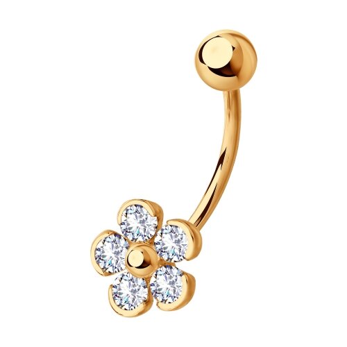 Золотой пирсинг в пупок Diamant online с фианитом 75509, Золото 585°