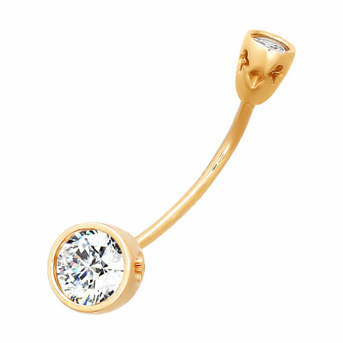 Золотой пирсинг в пупок Diamant online с фианитом 75509, Золото 585°
