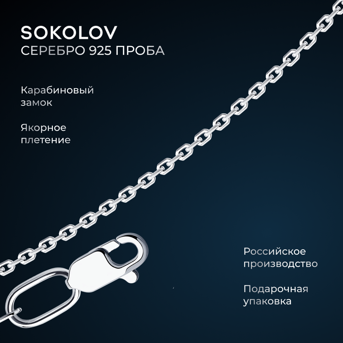 Цепь SOKOLOV из серебра 968530354, размер 55 см интересное: