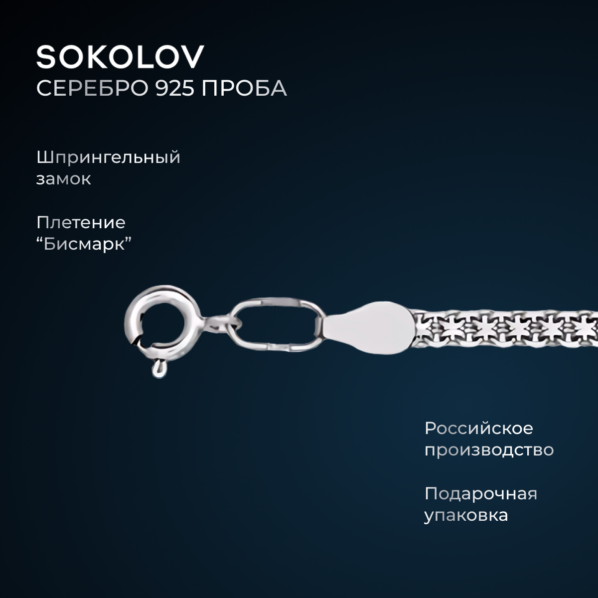 Купить Цепь SOKOLOV из серебра, плетение Бисмарк двойной, 925 проба 968050502, размер 50 см