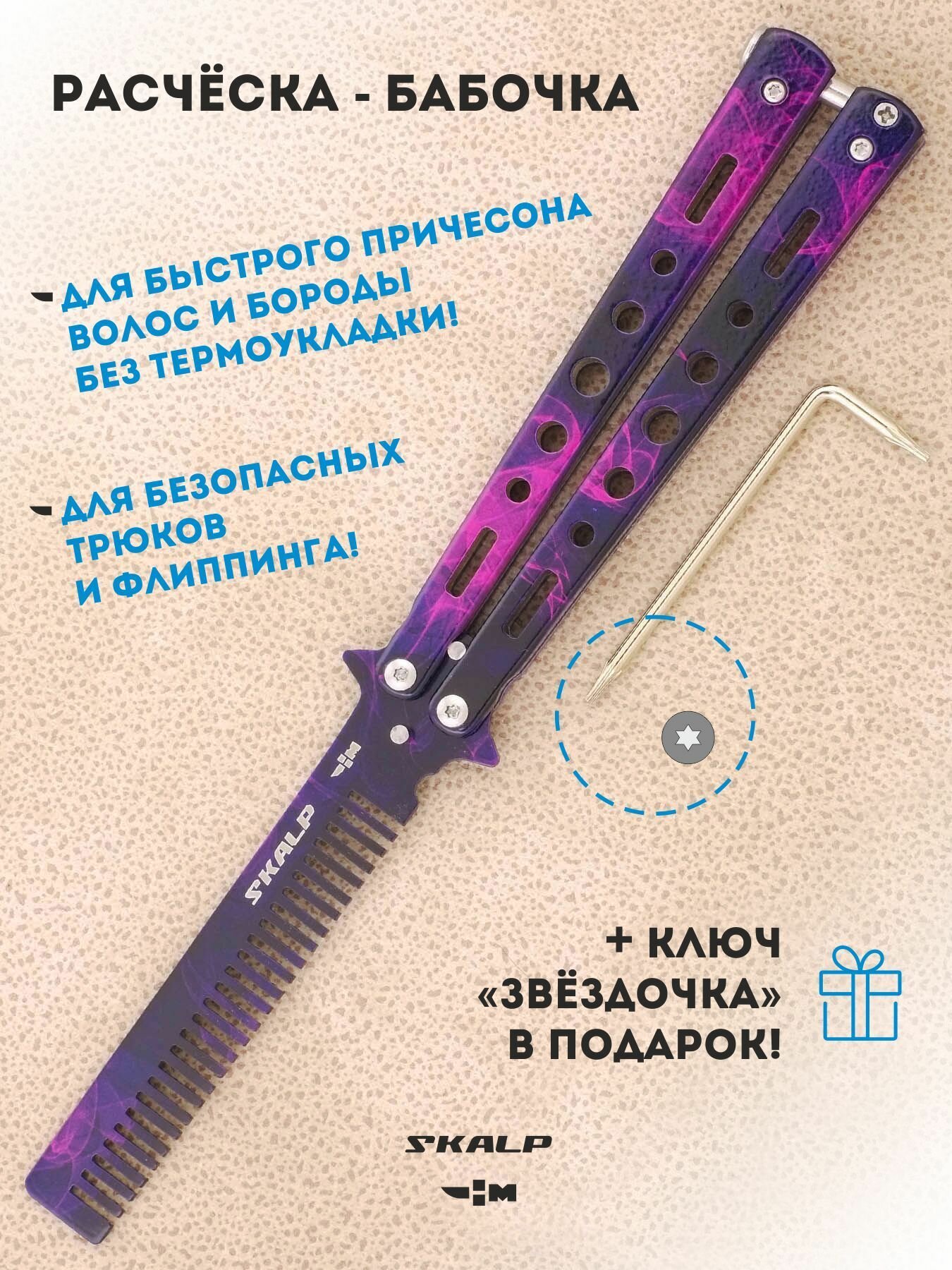 Купить Расческа для бороды и волос в виде ножа бабочки для выполнения трюков Ножемир SKALP гамма волны BRA-25