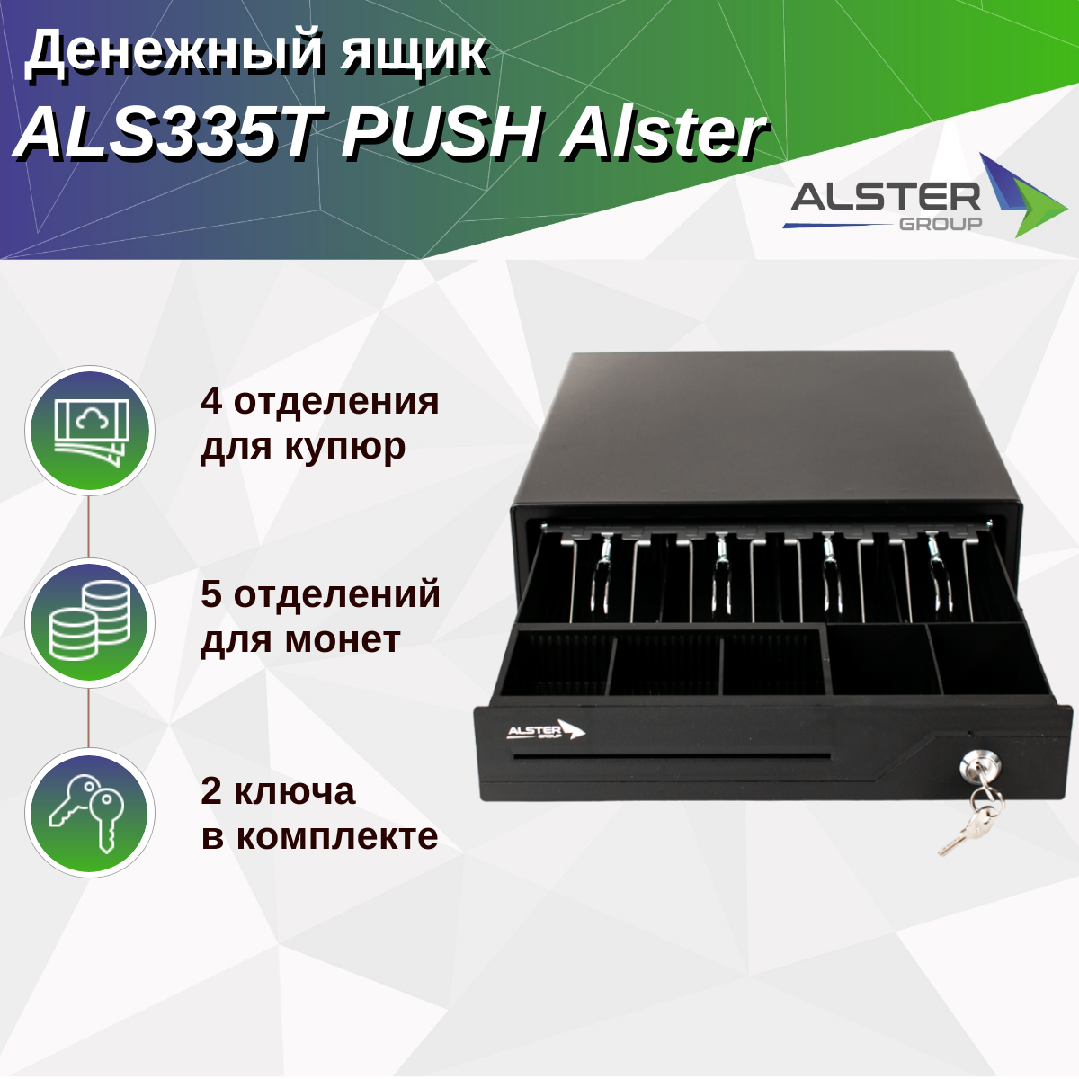 Денежный ящик ALS335T PUSH (4b/5c) Alster интересное: