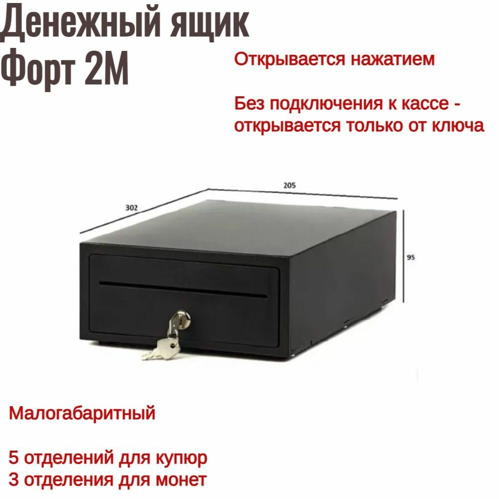Денежный ящик Форт 2М черный PUSH-функция (открывается нажатием), без подключения интересное: