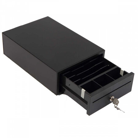 Горизонтальный денежный ящик Форт 2M PUSH (черный, механический, 5 ячеек для банкнот) интересное: