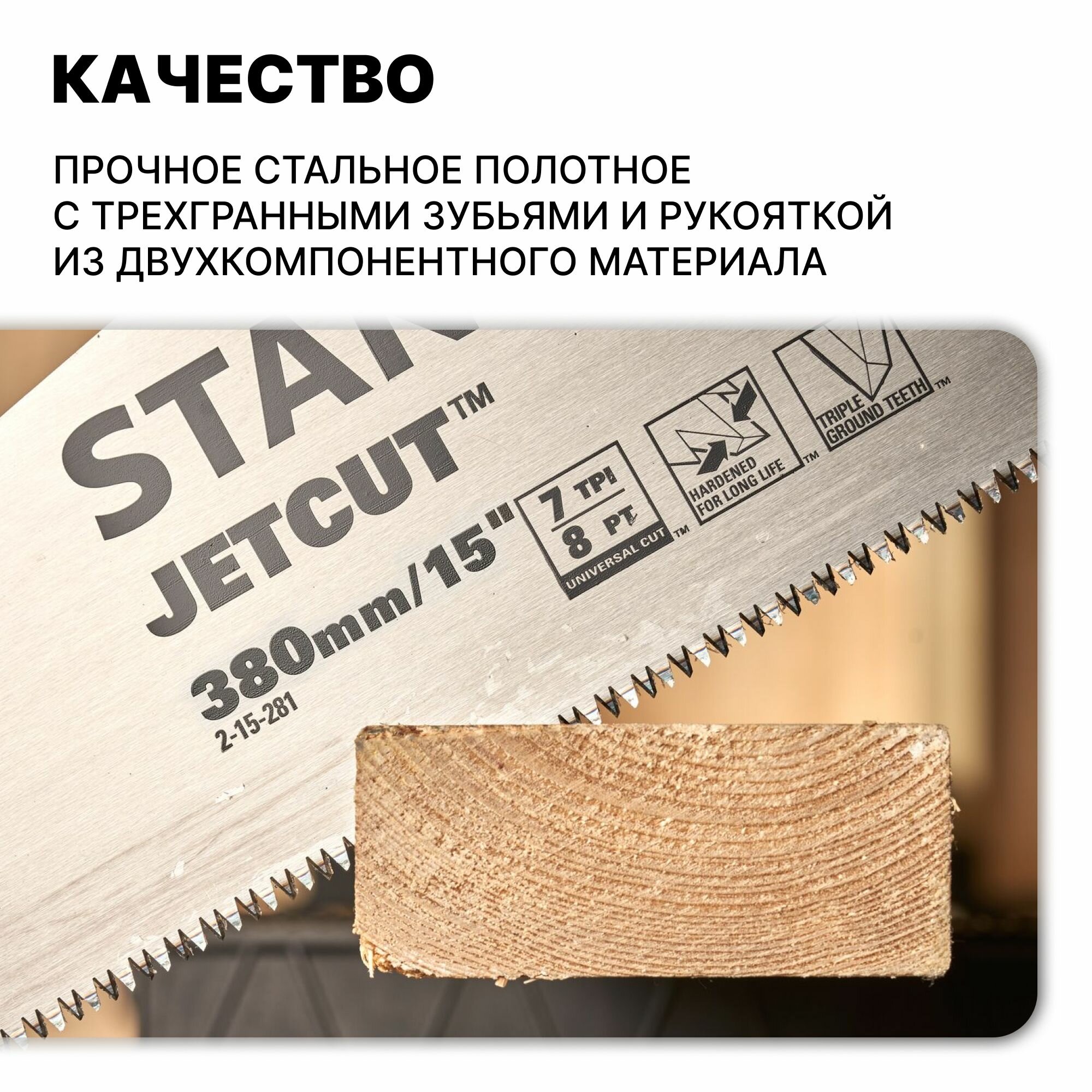 Ножовка по дереву "JET-CUT" с закаленным зубом 7*380мм (2-15-281) STANLEY