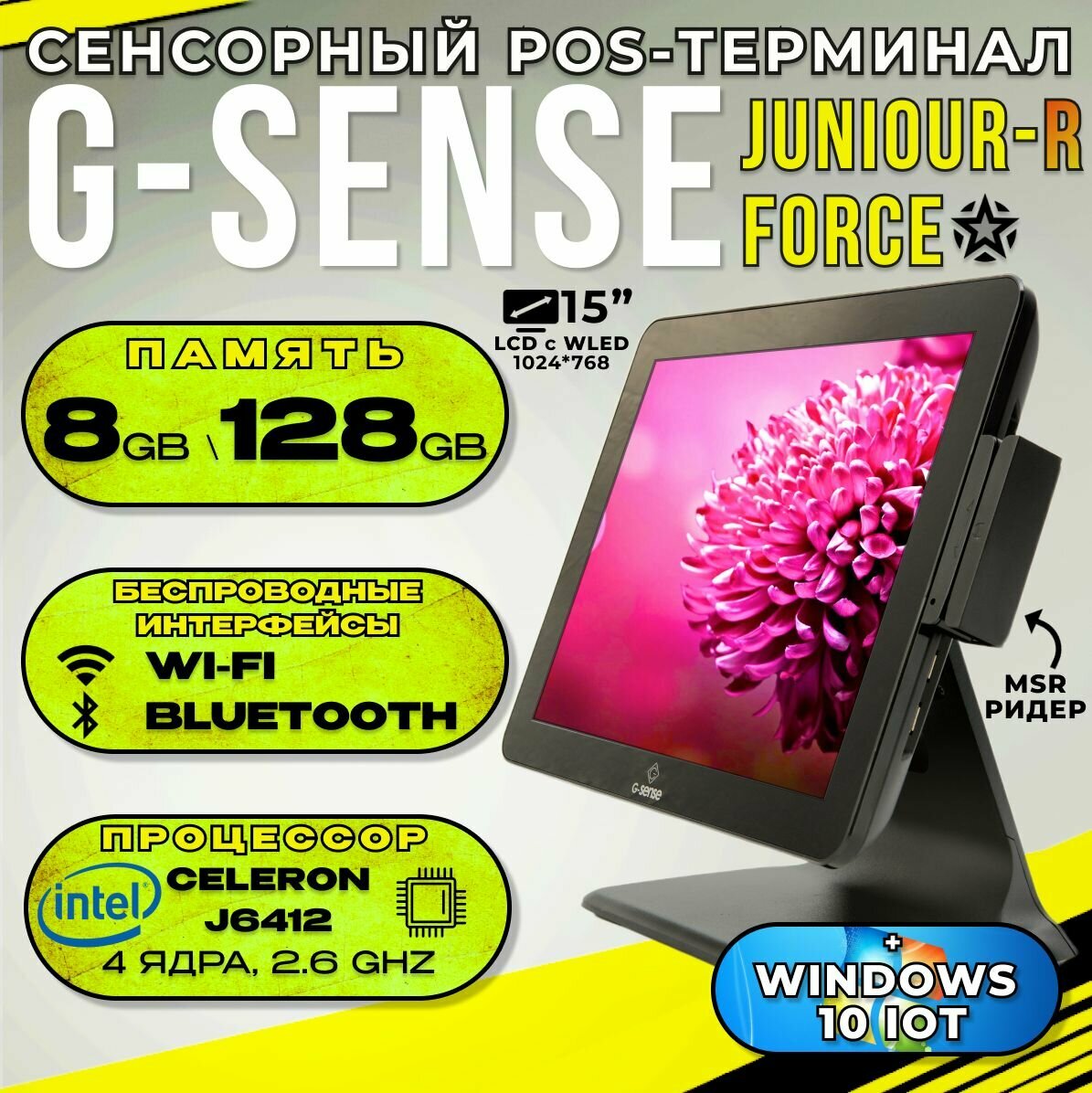 Сенсорный терминал G-Sense Juniour-R Force, черный (15", Celeron J6412, 8 Gb / 128 Gb, c MSR, настенное крепление, Wi-Fi, Bluetooth) + Windows 10 IOT Enterprise интересное: