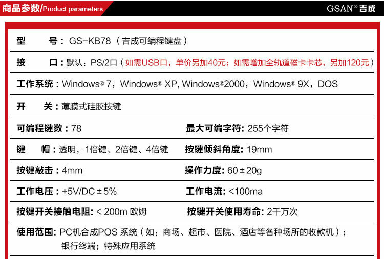 Купить Клавиатура GSAN-KB78, для POS-аппарата, USB-порт