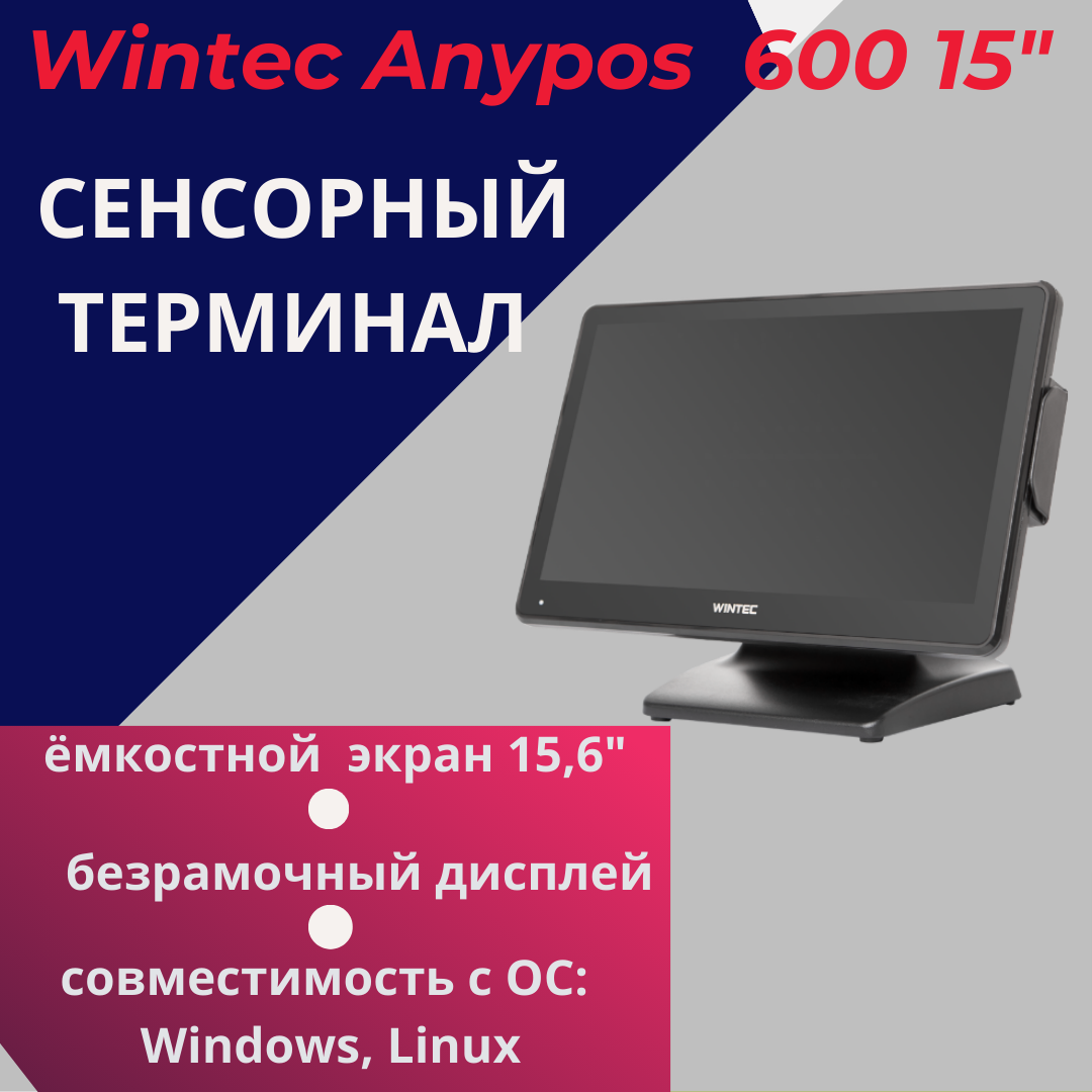 Купить Сенсорный тач терминал Wintec Anypos600 15"(6745A,Intel Celeron J1900,DDR3 4 Гб,SATA128Гб,Черный,Без OC)