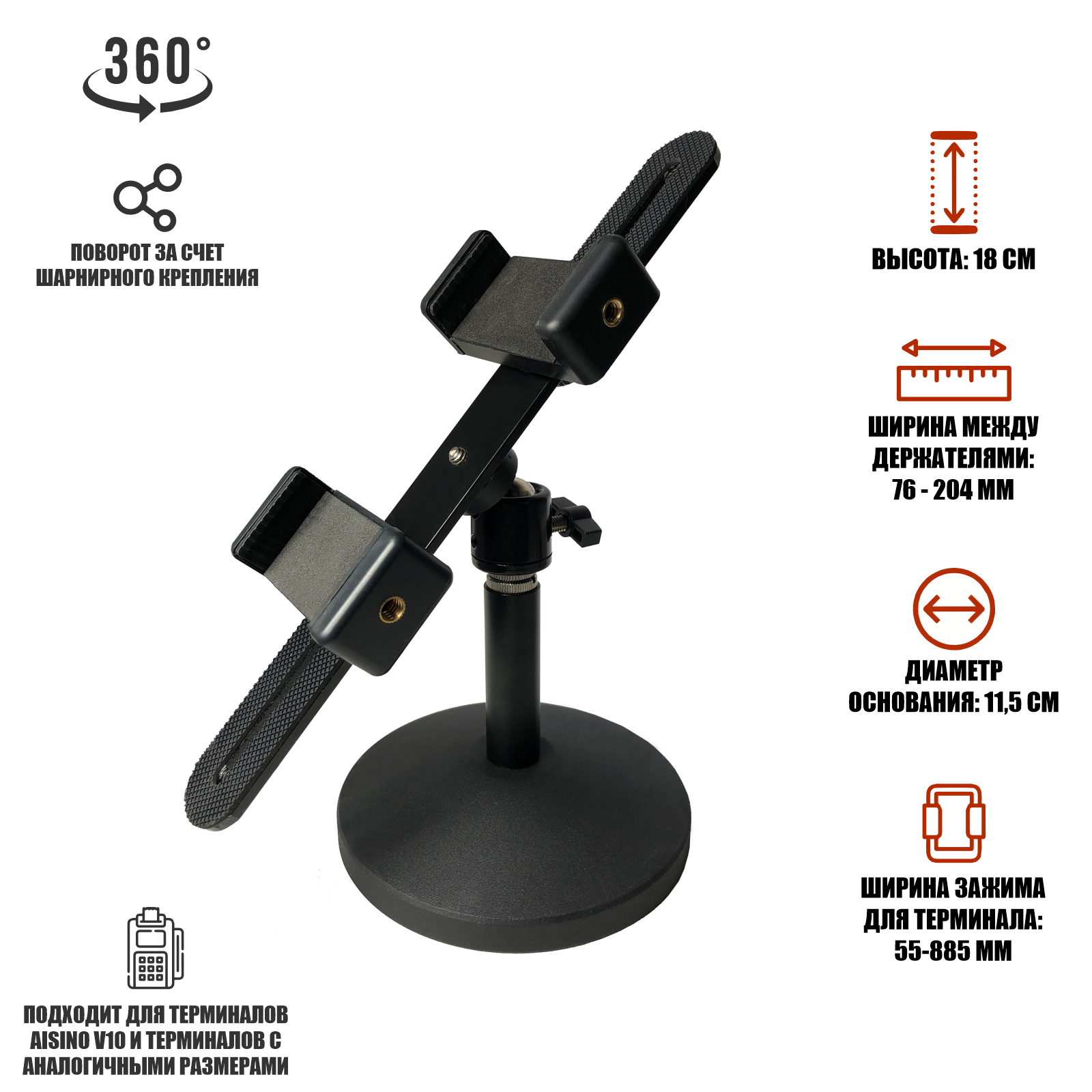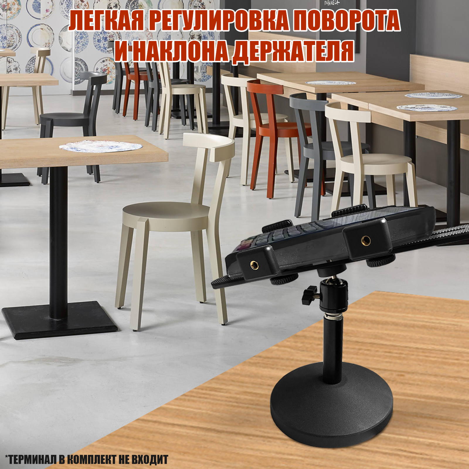 | Дополнительная информация | Шарнирная регулировка позволяет легко изменять угол наклона и поворота POS-терминала, обеспечивая удобство использования для клиентов и сотрудников. Кронштейн легко монтируется на различные поверхности и обеспечивает надежную фиксацию платежного терминала для эквайринга, что особенно важно в условиях интенсивной эксплуатации |