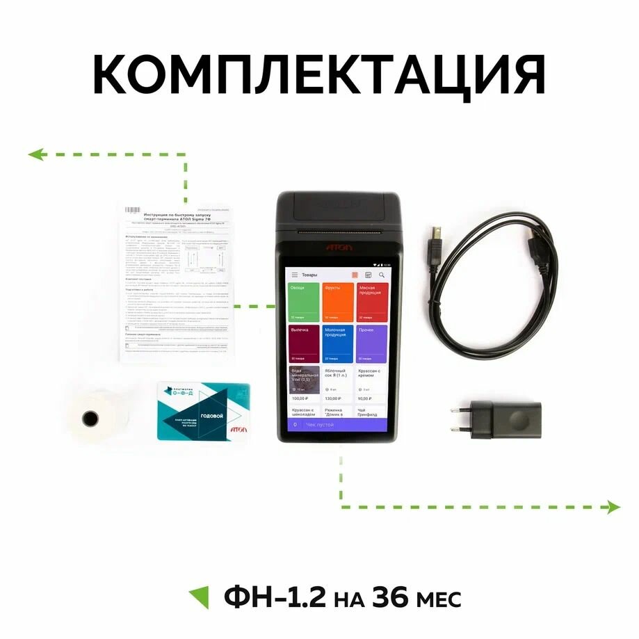| Комплектация | Онлайн-касса. Блок питания. Чековая лента. Тариф Sigma "Старт" на 12 мес. |