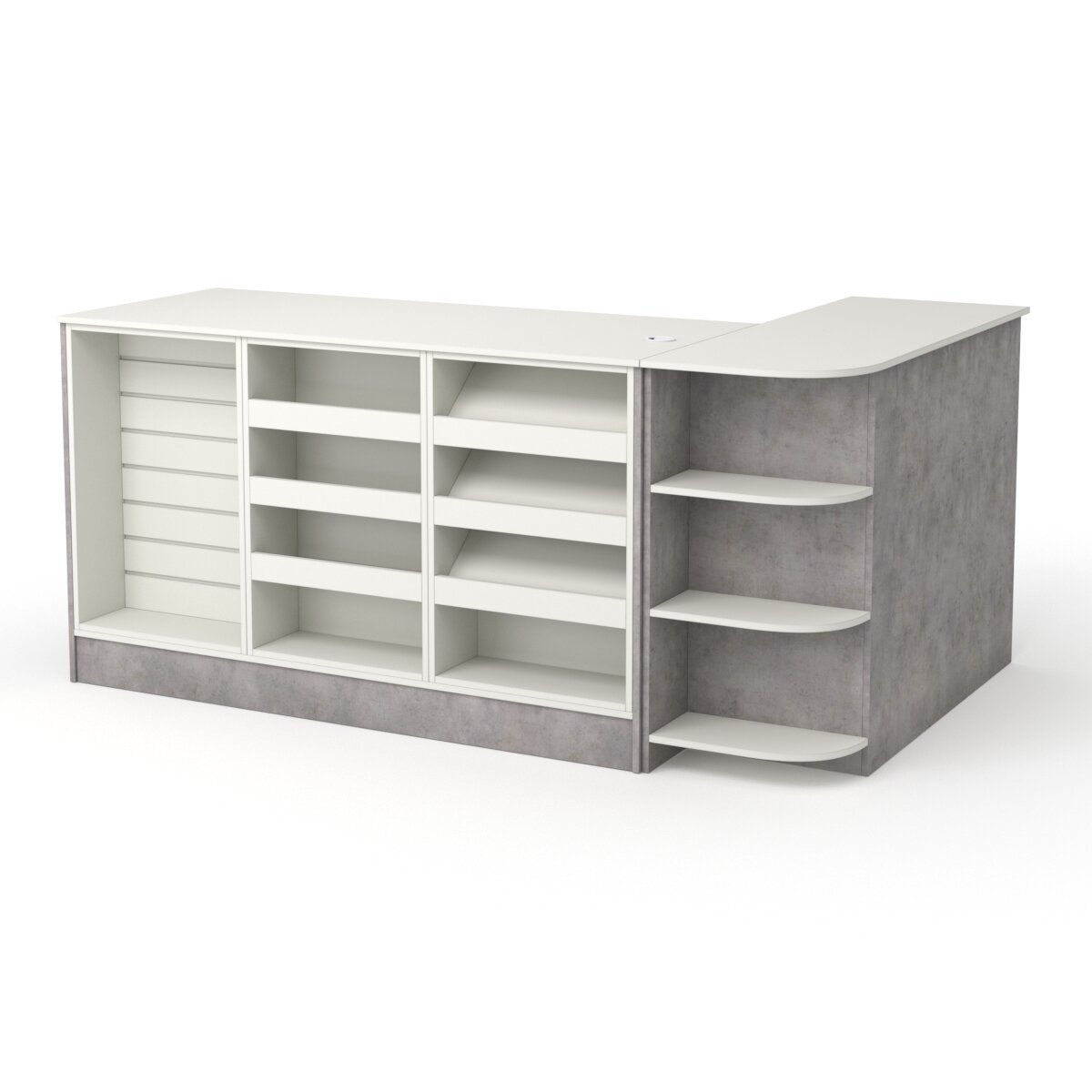 Кассовый стол "ривьера" №4 правосторонний, Бетон Чикаго светло-серый + Белый 200 x 125 x 90 см интересное: