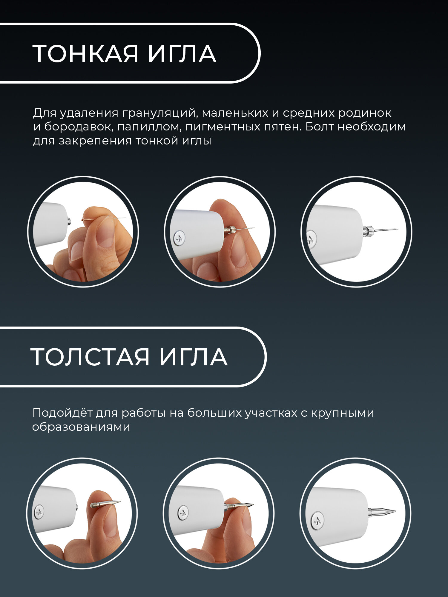 | Подробная комплектация | Косметический аппарат - 1шт; Толстая игла - 1 шт; Тонкая игла - 10 шт; USB кабель - 1шт; Инструкция - 1 шт; Приветственная карточка - 1 шт |