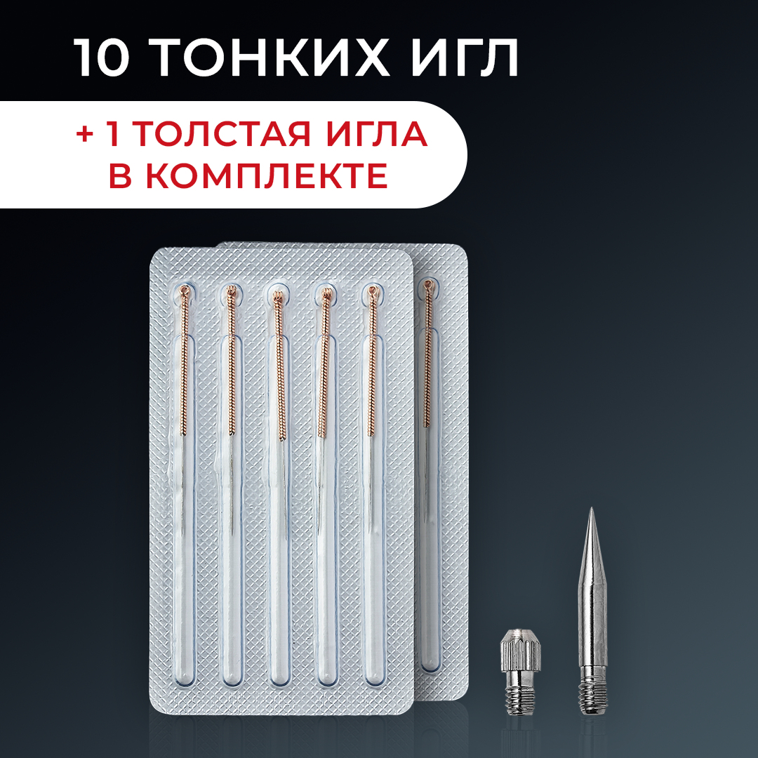 | Подробная комплектация | Косметический аппарат - 1шт; Толстая игла - 1 шт; Тонкая игла - 10 шт; USB кабель - 1шт; Инструкция - 1 шт; Приветственная карточка - 1 шт |