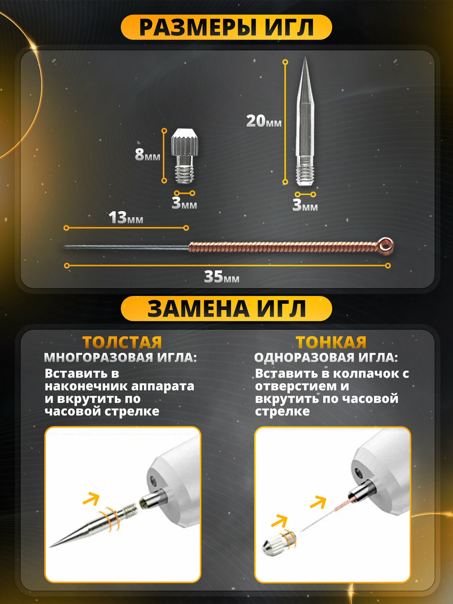 Купить Набор игл для косметического аппарата от бородавок TosWa 10 тонких игл, 1 толстая, 1 колпачок