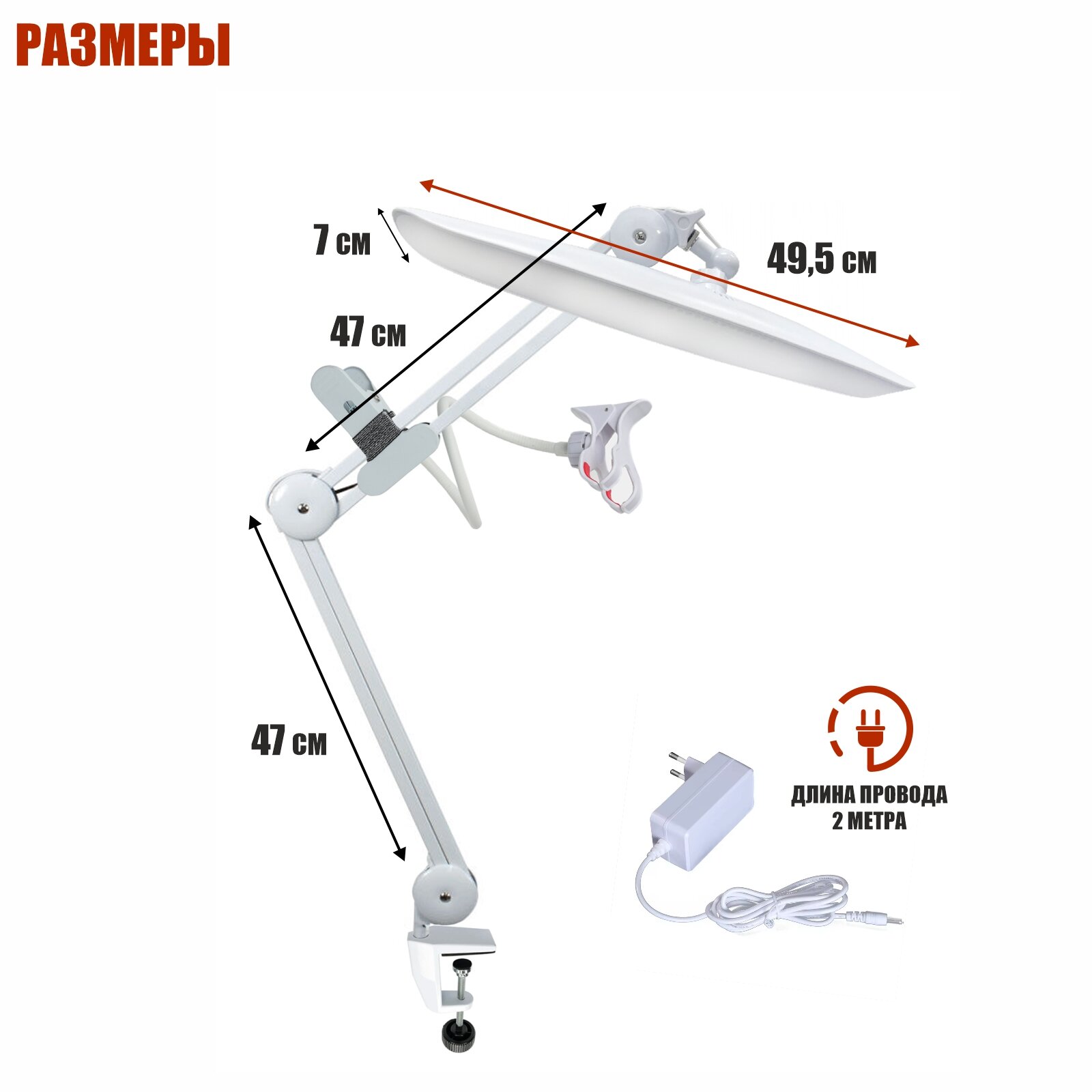 Купить Светильник для наращивания ресниц с гибким белым держателем для телефона с металл зажимом