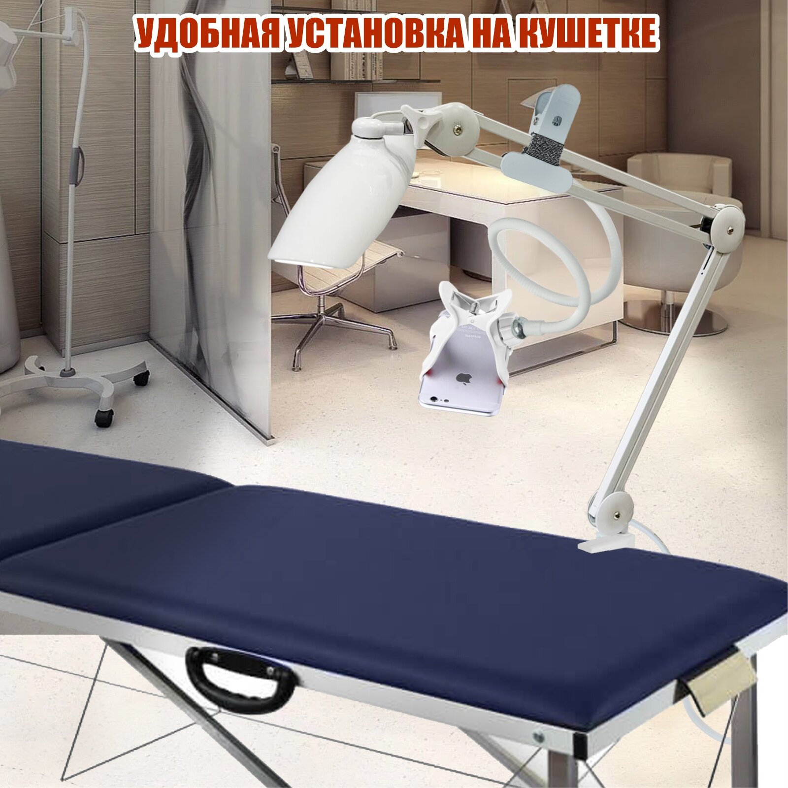 Светильник для наращивания ресниц с гибким белым держателем для телефона с металл зажимом интересное:
