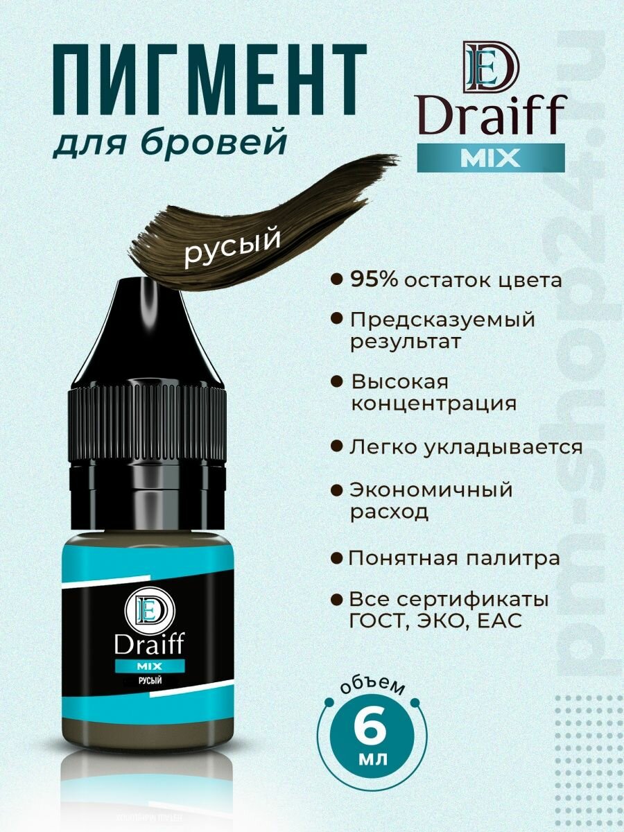 Draiff Mix "Русый" Пигмент для татуажа и перманентного макияжа бровей, 6 мл