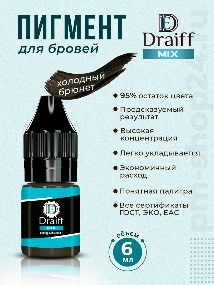 Draiff Mix "Холодный шатен" Пигмент для татуажа и перманентного макияжа бровей, 6 мл