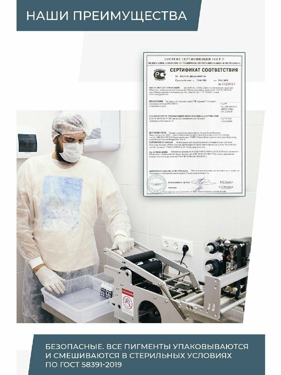 | Подробная комплектация | Пигмент 10 мл, деревянная коробочка, инструкция по применению |