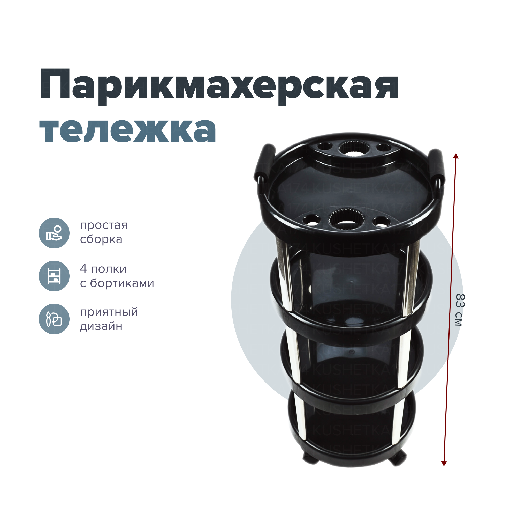 Kushetka174 / Тележка парикмахерская Krug / Тележка для парикмахера / Этажерка для салона красоты / Тележка для барбершопов интересное: