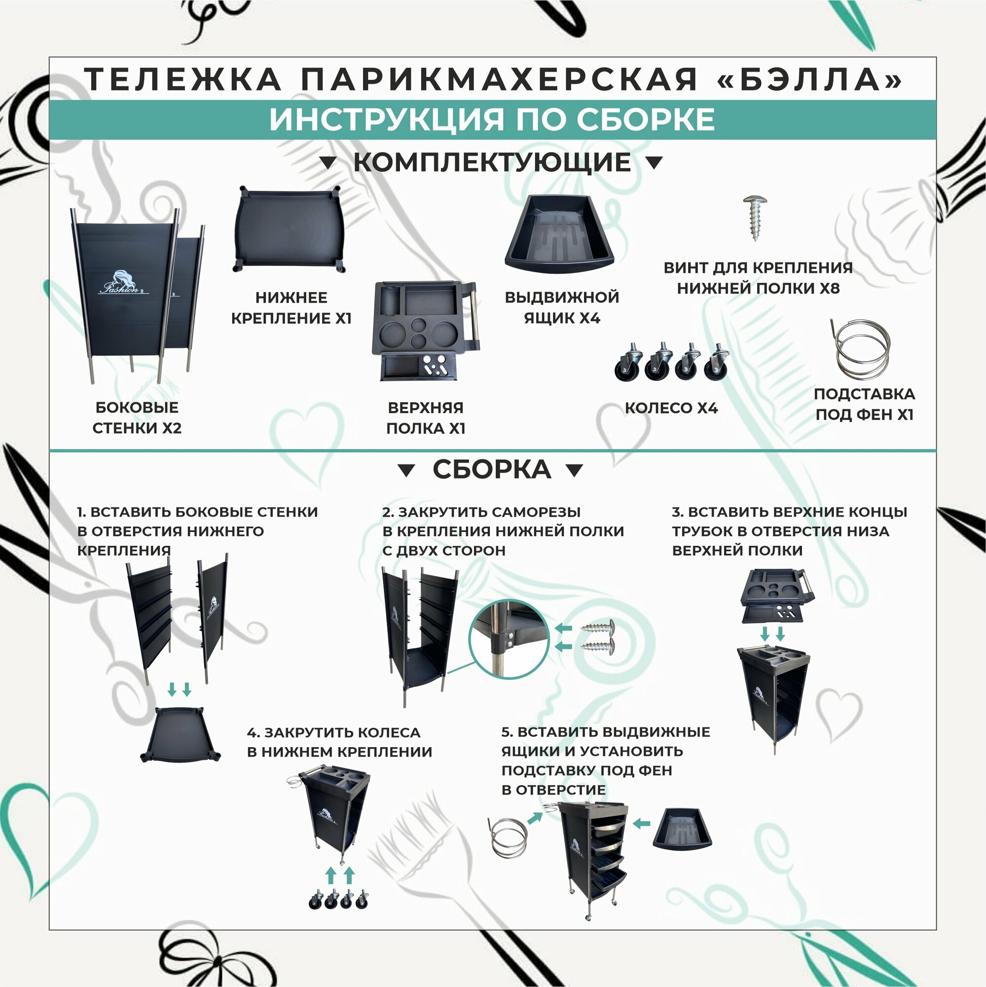 Kushetka174 / Тележка парикмахерская Bella / Тележка для парикмахера / Этажерка для салона красоты интересное: