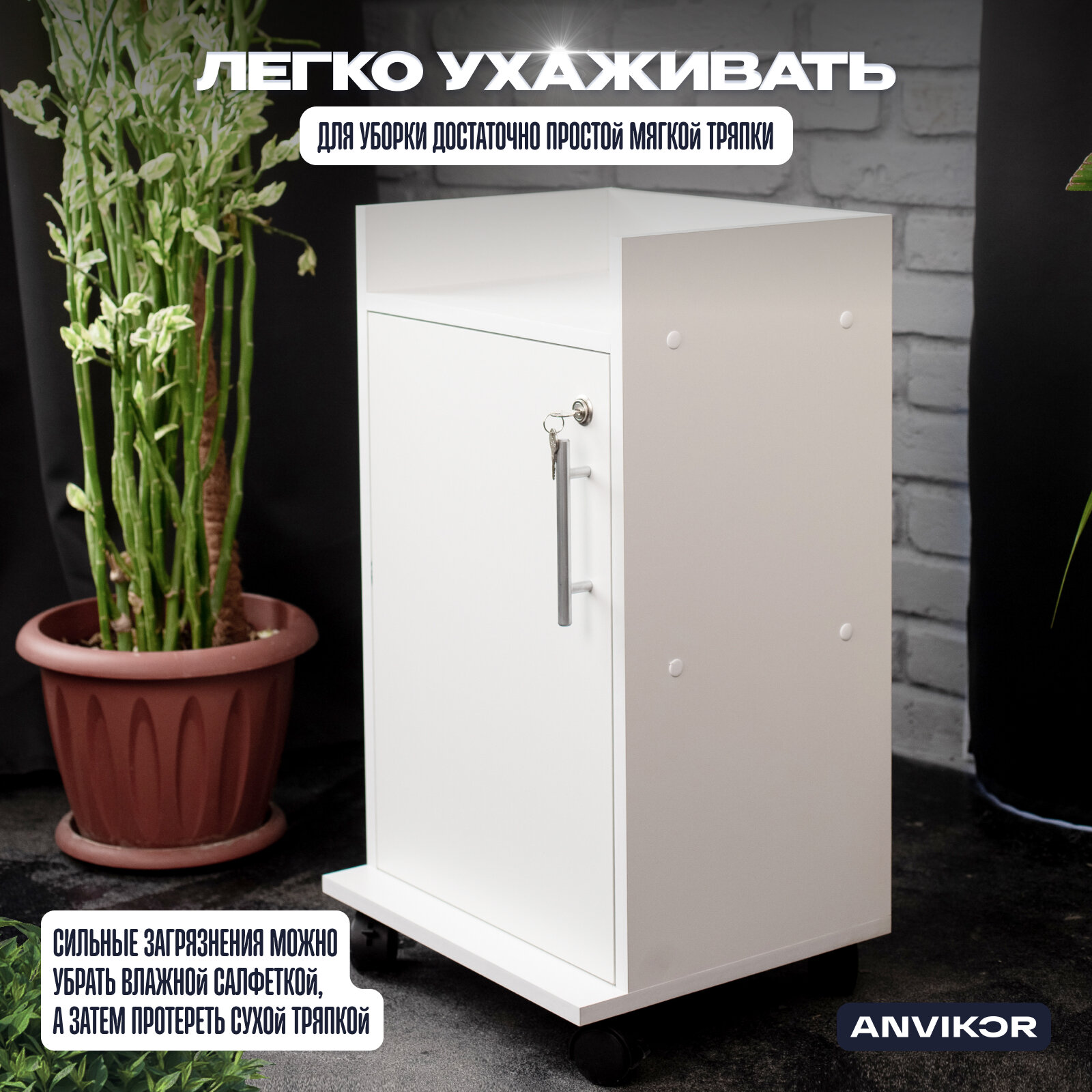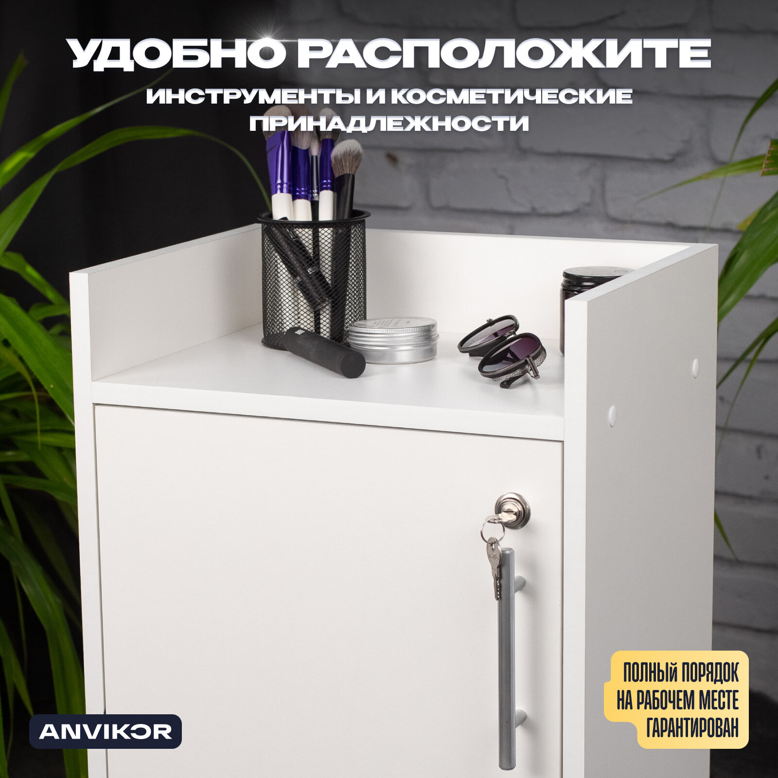 Косметологическая тележка с дверцей на замке Энца, белая интересное: