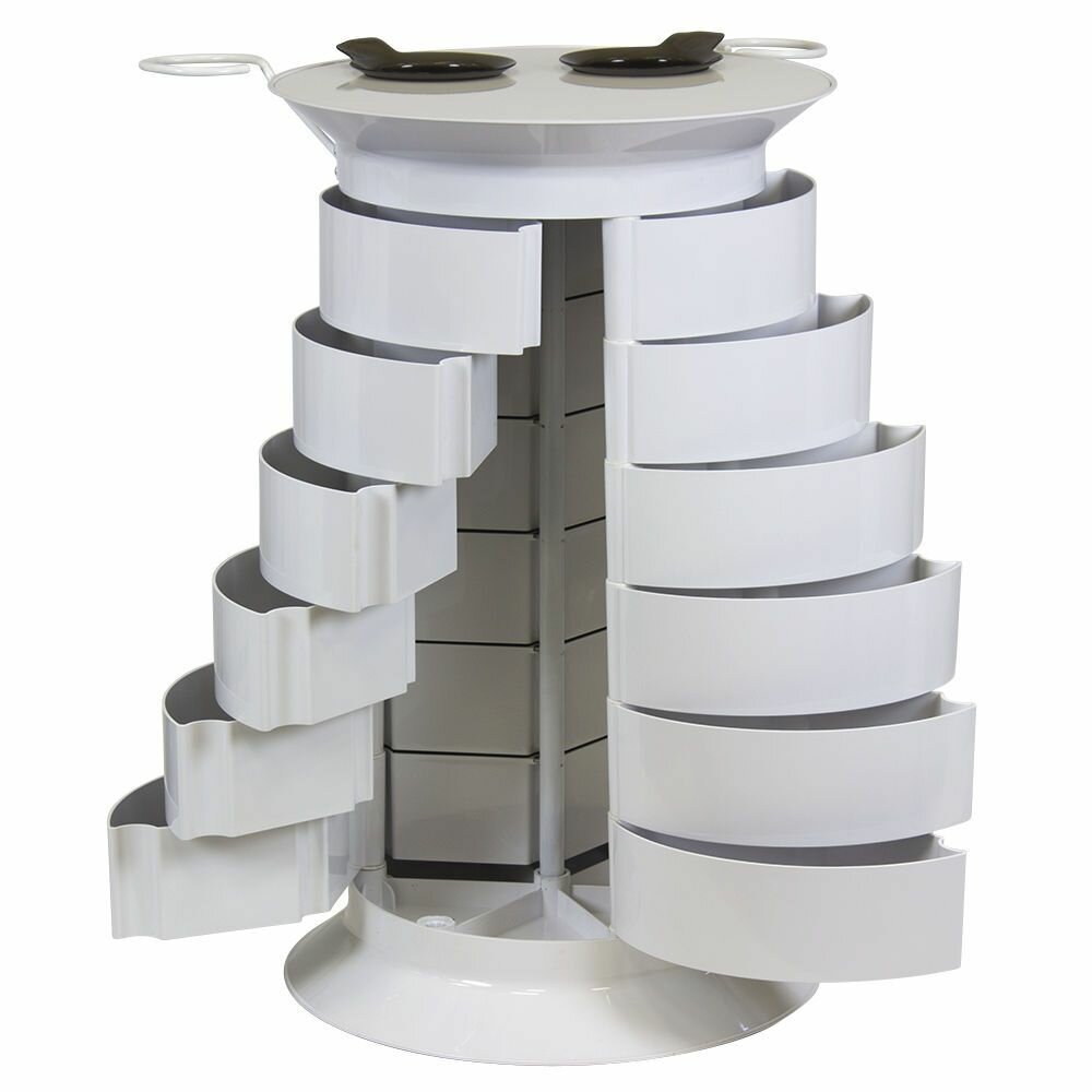 Парикмахерская тележка с 18 ящиками GiroCo Doble 49х49х83 см белая, круглая, пластиковая, выкатная на колесиках для салона красоты, парикмахера интересное: