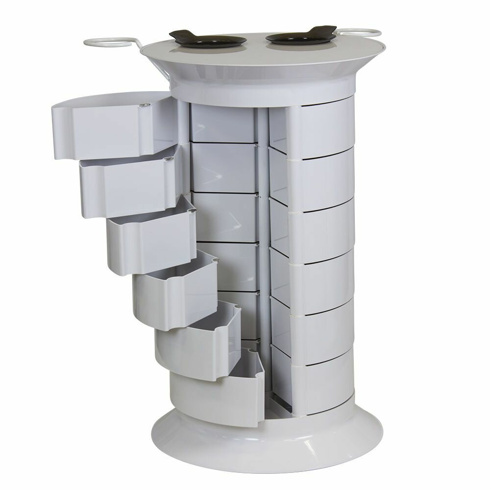 Купить Парикмахерская тележка с 18 ящиками GiroCo Doble 49х49х83 см белая, круглая, пластиковая, выкатная на колесиках для салона красоты, парикмахера